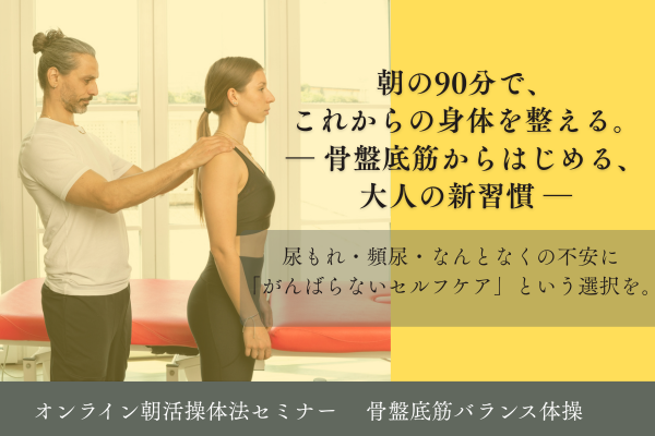 当治療室では操体法をメインに「骨盤底筋バランス体操」と銘打ってオンラインセミナーを